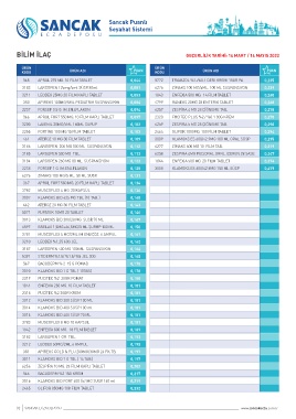 2255 FORTİNE 100 MG.15 FİLM TABLET 0,103 2464 GLIFOR 1000MG. 100 FİLM TABLET 0,294