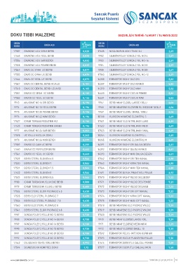 9991 SONDA FOLEY 2 YOLLU NO 20 BEYBI 0,730 17592 TERMOFOR PELUS-IMTSYON KURK GRI 7,50