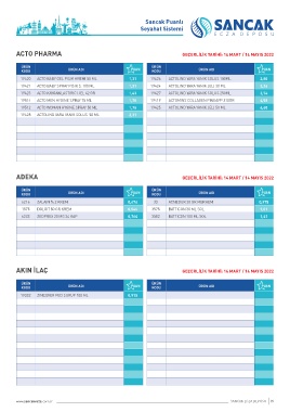 19512 ACTO WOMAN HYGINE SPRAY 50 ML 1,75 19425 ACTOLIND YARA YANIK JELI 50 ML 4,60